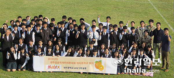 2018 제주감귤국제마라톤대회가 11일 제주시 조천운동장~월정해안도로 일원에서 펼쳐지는 가운데 학생 참여 열기도 뜨겁다. 도내 학교 단체팀이 잇따라 출사표를 던지며 '제주사랑, 감귤사랑'의 의미를 다진다.