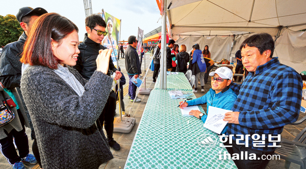 | 2017제주감귤국제마라톤 홍보이사인 국민 마라토너 이봉주 팬 사인회. |