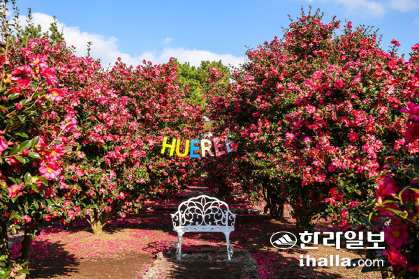 이달 31일까지 진행 예정인 '휴애리 동백축제'에 가면 휴애리 화산송이 올레길을 따라 거닐며 동백올레길, 동백정원, 동백산책로 등을 만나게 된다. 예쁜 포토존에서 인생·우정·가족사진과 웨딩스냅을 찍으며 또하나의 추억을 남길 수도 있다. 동물먹이주기체험(산토끼, 흑염소, 타조, 거위, 흑돼지, 말 등), 흑돼지·거위야 놀자(흑돼지쇼), 승마체험, 전통놀이 체험 등 다양한 체험은 덤이다.