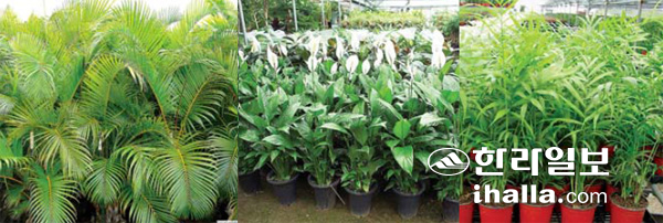 | 미세먼지를 막아주는 공기 정화식물인 아레카야자, 스파티필룸, 테이블야자. 사진=한라일보DB |