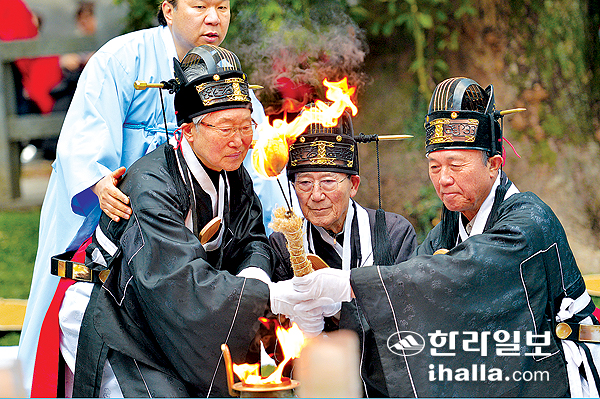 | 지난해 삼성혈에서 열린 '들불불씨 채화체례'. |