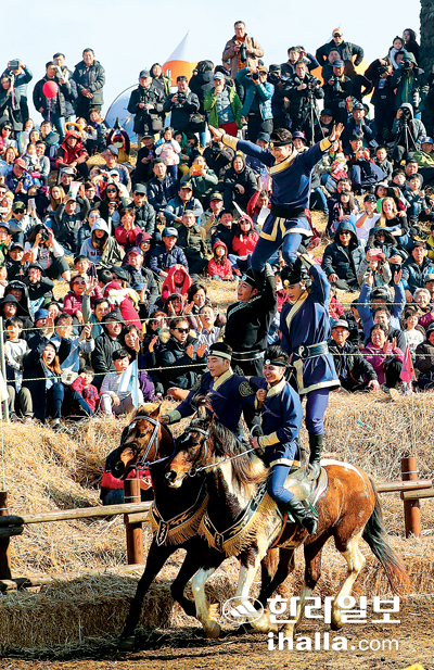 | 지난해 새별오름 일대에서 펼쳐진 마상마예공연. |