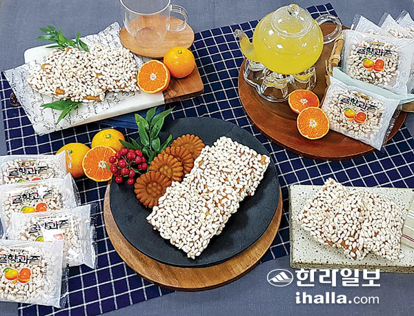 제주 대표 농산물인 감귤을 사용해 반죽한 전통 수제 한과로, 신효생활개선회 회원들 중심으로 지역 일자리 및 지역 농가 농외소득 창출에 앞장서도록 노력하고 있다.