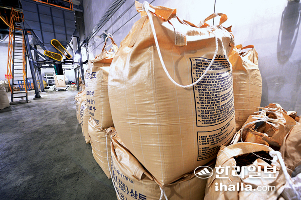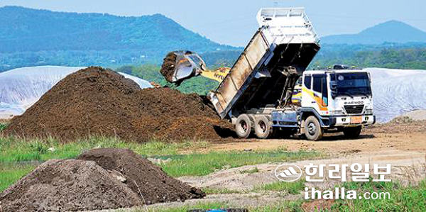 | 제주시 봉개동 소재 음식물자원화시설에 반입된 음식물 쓰레기는 발효과정과 후숙기간을 거친 후 퇴비로 생산된다. |