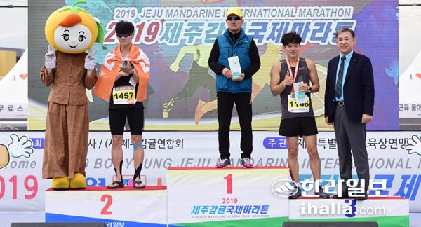 2019제주감귤국제마라톤 남자부 10km 시상식. 이상국기자