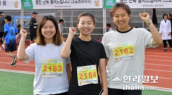 10일 조천운동장에서 몸을 풀고 있던 담으멍(대표 최은영·5명)의 번호판은 다른 참가자들과는 조금 달랐다. 주최사에서 제공한 종이로 만든 깔끔한 번호판이 아닌 버려진 타이벡을 수거, 세척과 친환경 UV인쇄를 통해 직접 제작한 것이다. 살짝 더러운 느낌이 있지만 속내를 알면 그 편견은 금방 풀린다.