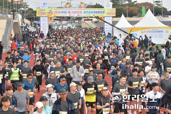 [종합] '2019 부영 사랑으로 제주감귤국제마라톤'의 뜨거운 열기가 제주 가을을 물들였다. 모두가 함께 즐긴 '마라톤축제'에서 달림이들은 푸른 제주 해안을 곁에 두고 달리며 하나가 됐다.