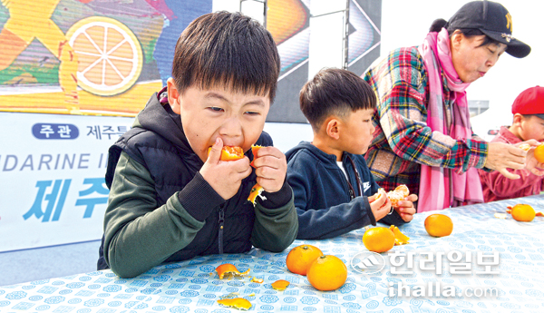| 부대행사인 제주감귤 빨리 먹기 이벤트. 사진=특별취재팀 |