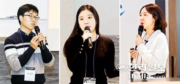 | 문대림 제주국제자유도시개발센터 이사장의 인사말을 시작으로 해녀의 부엌, 제주박스, 당신의 과수원 관계자가 기업사례를 공유하고 있다. |