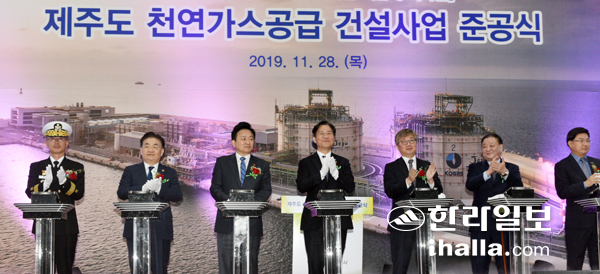 제주에도 액화천연가스(LNG) 공급망과 발전체계가 구축되면서 국내에 천연가스 도입된 지 33년 만에 '전국 천연가스 시대'가 열렸다. 산업통상자원부는 11월 28일 제주시 애월항에서 '제주도 천연가스 생산기지 건설 사업 준공식'을 개최했다. 도내 발전소에서의 복합발전은 물론 내년 3월부터 배관공사가 마무리 되면 도내 약 3만가구에 가정용 LPG보다 저렴한 LNG가 보급될 전망이다.