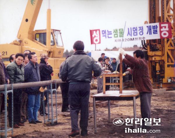 1995년12월 20일 먹는샘물 시험정 개발 모습. 사진=제주도개발공사 제공