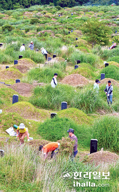 | 제주시공설공원묘지의 벌초 행렬. 한라일보 DB |