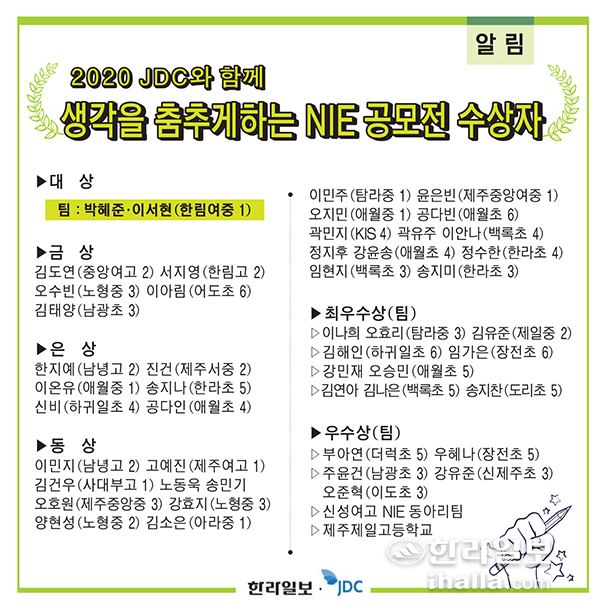 [알림] 생각을 춤추게하는 NIE 공모전 수상자