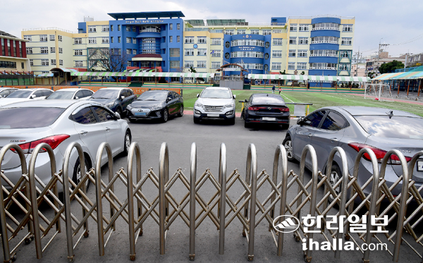 | 지난해 12월 21일 코로나19 집단 감염 확산에 따라 도내 전학교 등교중지와 원격수업에 들어간 가운데 등교중지 첫날 문 닫힌 학교. |