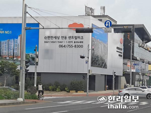 제주시 연동 옛 대한항공 사택 부지에 건축할 e편한세상 연동 센트럴파크의 견본주택 건설이 한창이다. 문미숙기자