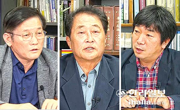 왼쪽부터 부남기 제주특별자치도재난대응과장, 송창우 제주와미래연구원장, 이영웅 제주환경운동연합사무처장.