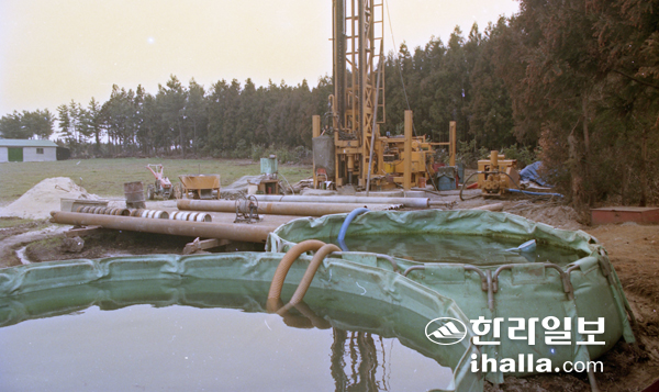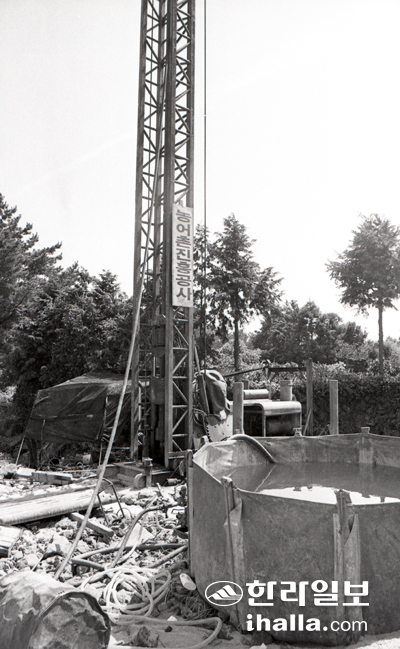 | 1997년 도내 한 중산간 지역에서 지하수 관정 굴착작업을 하고 있다. 사진=한라일보DB |