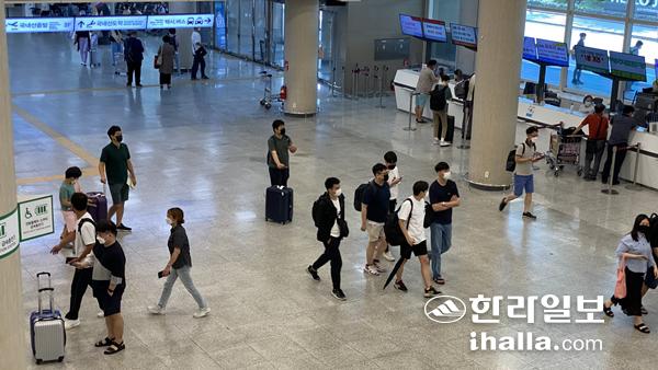 사회적 거리두기 4단계 첫날인 18일 오전 제주여행의 관문인 제주국제공항과 제주여객선 터미널은 비교적 한산한 모습을 보였다.