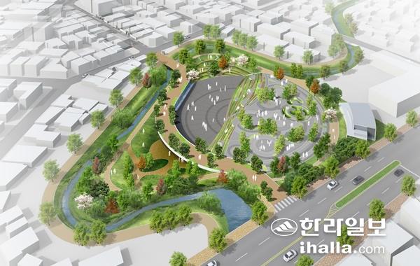 시는 당초 도심지 홍수피해 예방을 위해 시민회관 내 지하 저류지를 활용한 공간계획을 오픈저류지 형태로 건립할 예정이다.