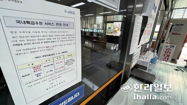 제주지방우정청 지난 14일부터 당일특급 우편서비스 중단