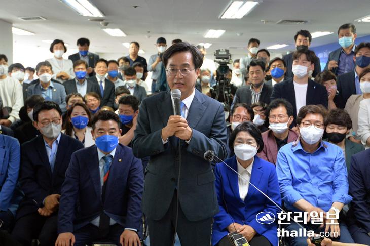 앞서 김 당선인은 안민석·조정식 의원, 염태영 전 수원시장과 4파전으로 진행한 본경선에서 과반을 득표, 결선투표 없이 후보로 확정됐다.