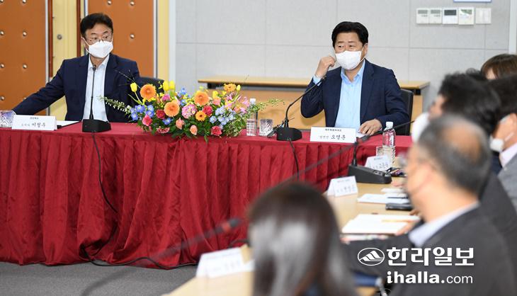 오영훈 제주도지사 당선인과 이철우 경북도지사는 14일 제주시 연동에 위치한 제주웰컴센터 3층 회의실에서 열린 '제주·경북 관광 발전을 위한 스마트관광 활성화 전략 토론회'에서 양 지역의 관광 발전을 위해 힘을 모으기로 했다.