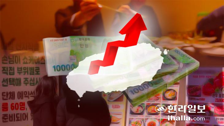 제주시 연동 소재 직장에 다니는 김모씨는 "1년 전만 해도 8000~9000원짜리 점심 메뉴가 여러 종류였는데 지금은 찾아보기 어렵다"며 "올해들어 가격을 1000원정도씩 올린 곳들이 많아 점심으로 많이 찾는 대부분의 음식 가격을 1만원 정도로 봐야 한다"고 말했다.