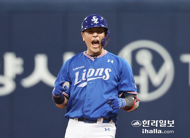 포효하는 삼성 라이온스 강민호. 연합뉴스