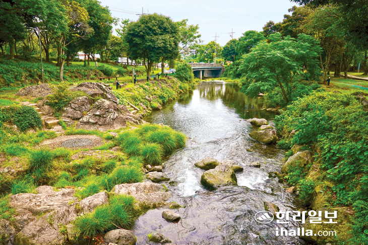 [한라일보] 서귀포 사람들은 천지연폭포 상류 하천을 가리켜 '솜반내'라고 부른다. 연중 용천수가 흐르는 이곳은 물이 맑고 깨끗할뿐만 아니라 수량이 풍부해 예나 지금이나 여름철 냉수욕과 휴식공간으로 애용되고 있다.