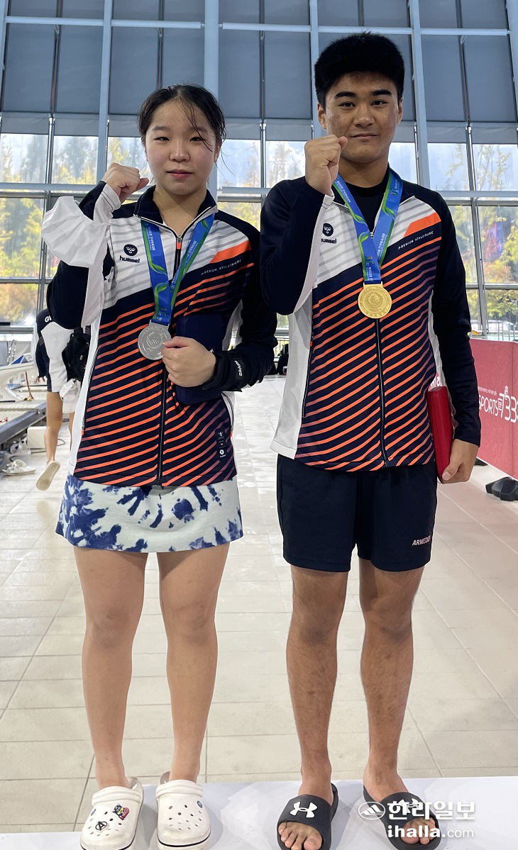 | 제103회 전국체육대회 19세이하부 다이빙에서 은메달을 딴 이다연(왼쪽)과 금메달리스트 박지혁. |