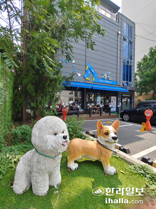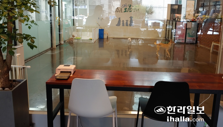 지난 7월 찾은 강동리본센터는 얼핏 카페 같았다. 센터 1층에는 누구나 편히 앉을 수 있는 테이블이 준비됐고 앙증맞은 표정의 유기견 사진이 담긴 액자가 장식처럼 놓였다. 코로나19 이전만 해도 실제로 차를 주문해 마실 수 있었다는 '리본카페'다. 같은 층 바로 옆으로, 통유리 벽을 하나 두고 유기견들이 뛰노는 놀이장이 보였다.