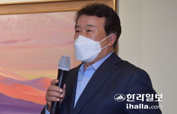 | 인사말 하고 있는 한라일보 김건일 대표이사. 이상국기자 |