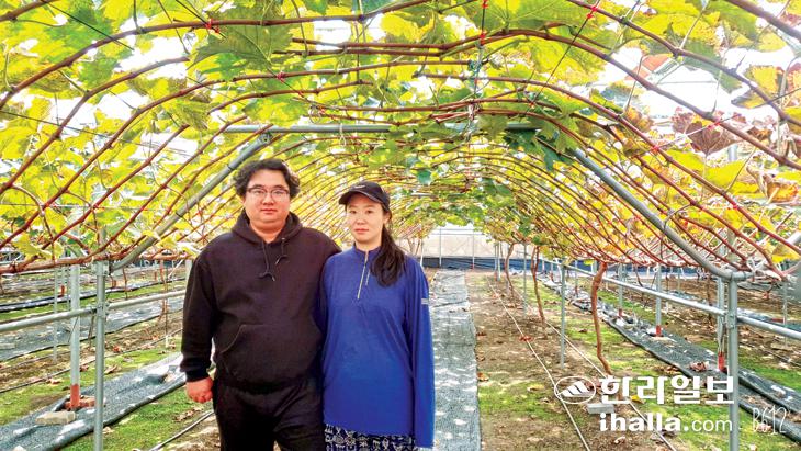 '귀족 과일' 샤인머스켓에 인생 2막에 승부수를 던진 젊은 부부가 서귀포시 표선면 가시리에 산다. '블라썸하우스팜'의 김영주(41)·이나영(33) 부부가 그 주인공이다. 블라썸은 유실수의 꽃을 의미한다.