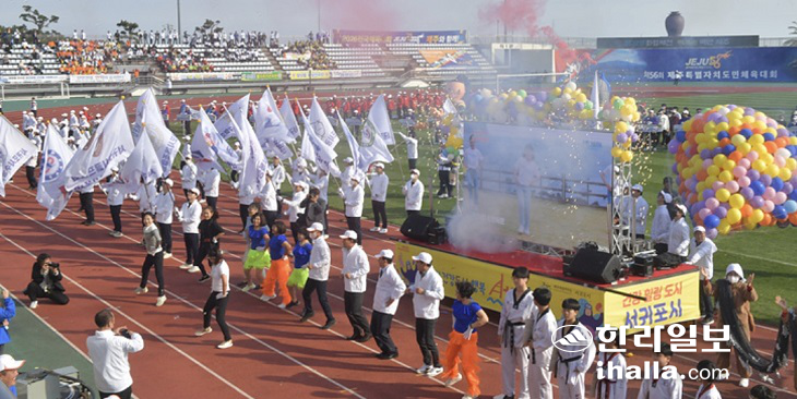 [한라일보] '위대한 도민시대,스포츠로 건강하고 행복한 제주'실현을 위해 마련된 제56회 제주특별자치도민체육대회가 28일 개회식을 시작으로 3일간의 열전에 돌입했다.