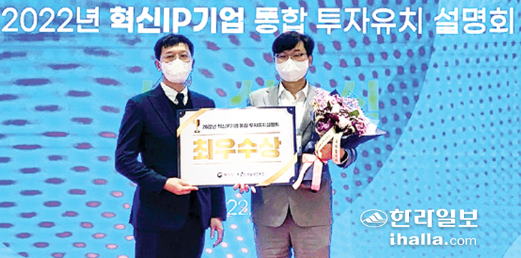 | 제주혁신성장센터 Route330 미래 모빌리티 분야(KAIST 위탁 운영) 입주기업인 탄소중립 스타트업 이온어스(주)가 지난 11월 17일 COEX에서 진행된 '혁신IP기업 통합 투자유치설명회'에서 최우수상을 수상했다. |