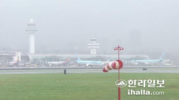 현재 제주공항에는 강풍 특보와 이.착륙 방향으로 급변풍 특보가 내려졌다.