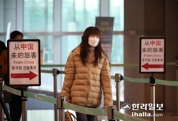 인천국제공항 입국장에 '중국發 전용통로'로 입국하는 관광객. 연합뉴스