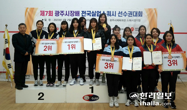 [한라일보]부산광역시체육회가 제7회 광주시장배 전국실업스쿼시 선수권대회에서 충북체육회의 대회 3연패를 저지하며 정상등극에 성공했다.