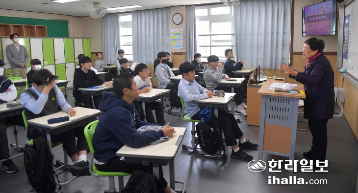 지난 27일 제주중학교에서 진행된 4·3평화·인권교육. 한라일보 DB