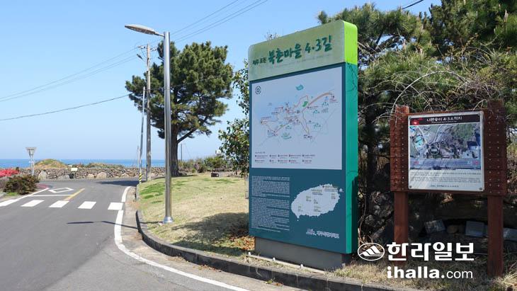 지난달 31일 제주시 조천읍 북촌마을 4·3길을 걸어봤다. 북촌 너븐숭이 4·3기념관을 출발해 4·3 학살터였던 몬주기알, 북촌포구, 낸시빌레, 꿩동산, 마당궤 등 4·3 역사현장을 확인할 수 있는 북촌마을 4·3길은 약 7㎞ 정도로 2시간가량이 소요된다. 뿐만 아니라 북촌 환해장성과 북촌마을 본향당 등 마을의 역사를 살펴볼 수 있는 공간도 4·3길에 포함돼 있다.