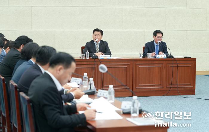 회의에는 오영훈 지사를 비롯해 위원장인 양문석 제주상공회의소 회장, 도의회, 경제, 관광, 안전, 청년, 1차산업, 환경,사회단체, 공공기관 등 분야별 위원 18명이 참석했다.