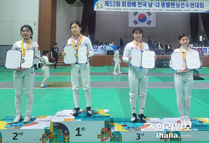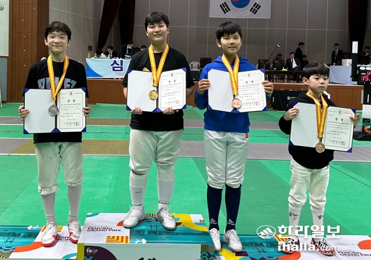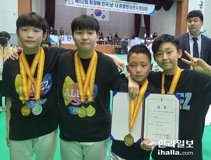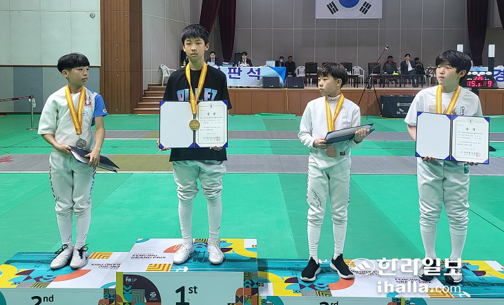 이시윤, 소후영, 배성빈(이상 세인트존스베리아카데미 제주), 이지성이 팀을 꾸린 플러레 단체전에서도 우승을 차지하며 시상대 맨 위에 섰다.