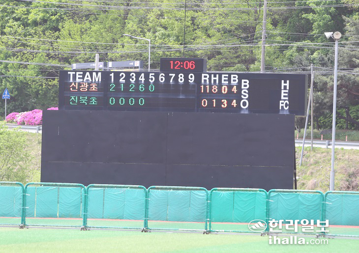 제주대표로 나선 신광초는 22일 천안야구장에서 열린 대회 첫 날 전북 전주진북초를 맞아 3회까지 5-0으로 앞선 뒤 4회 대거 6점을 뽑아내며 11-0 4회 콜드게임승을 거뒀다.