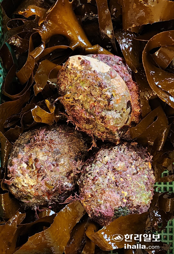 | 올 4월에 대정 상모리에서 활동하는 해녀로부터 직접 말전복 네 마리를 샀다. 최근 시장에서는 보기 힘든 크기의 생물이었다. (제종길 제공) |
