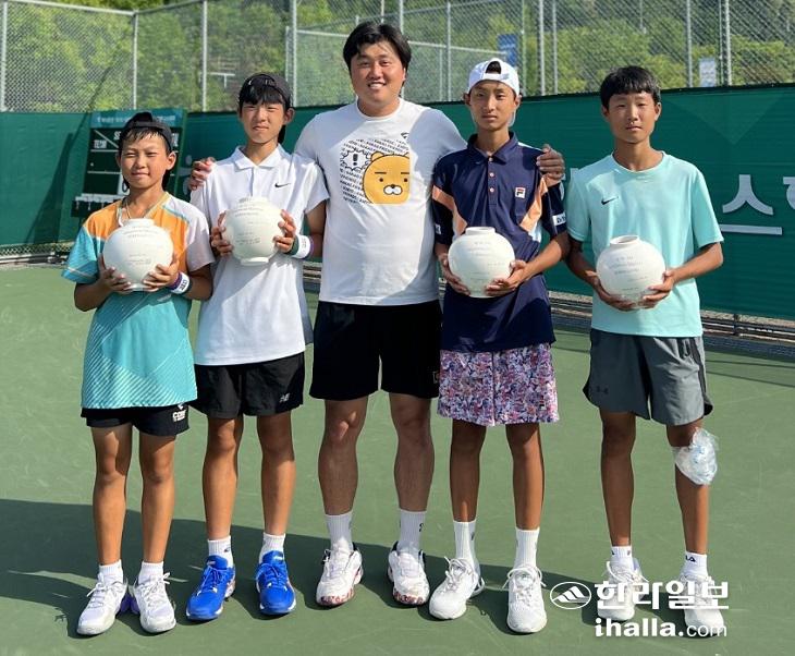 왼쪽부터 안경빈, 이준혁, 제이원 테니스아카데미 이영광 원장, 김동민, 김동윤.