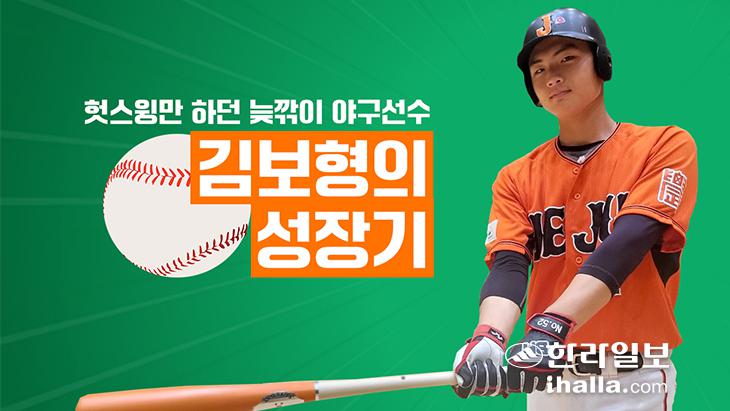 [한라일보]지난 24일 제주종합경기장 야구장. 제주고와 부산정보고의 고교야구주말리그 후반기(부산·제주권역) 4차전이 열렸다. 2회말 제주고의 공격이었다. 8번 타자로 나선 김보형. 김보형은 부산정보고의 포수보다 머리 하나가 더 있을 정도로 피지컬은 뛰어나 보였다. 선수등록 명부엔 190㎝ 88㎏으로 기록돼 있다. 경기장을 찾은 이들은 한결같이 못 보던 선수여서 다른 지역 학교에서 전학 온 선수로 인식했다. 하지만 제주고에서 계속 야구를 했으며, 이날은 지명타자로 나섰다. 첫 타석은 삼진이었다. 그리고 김보형은 3회 4-2로 쫓기던 상황에서 우전안타로 타점을 올렸다. 올 시즌 두 번째 안타와 함께 첫 타점을 기록하는 성과(?)를 거뒀다.