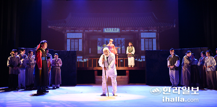 ▶"멀리 떨어진 외로운 섬"이 거둔 값진 승리=지난 15일 저녁 제주도문예회관 대극장. 도내외 관객들이 객석을 가득 메운 그곳에서 제41회 대한민국연극제 개막 축하 공연으로 제주대첩의 이야기가 무대에 살아났다. 제주에서 활동하는 배우들을 주축으로 약 30명의 연극인들이 1인 2역 등을 맡아 이우천 작·연출로 '치마돌격대'를 초연했다.