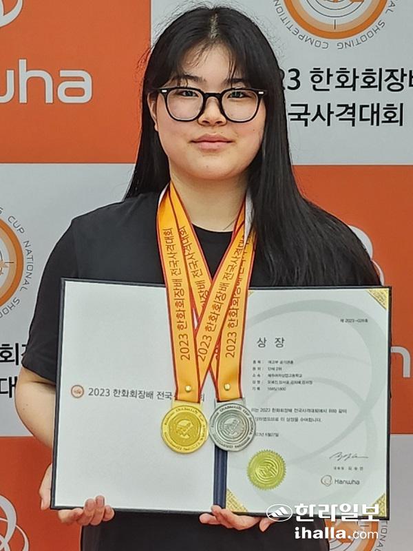 오예진은 지난 27일 경남 창원국제사격장에서 열린 2023 한화회장배 전국사격대회 여고부 공기권총에서 금메달을 획득했다. 특히 지난해 대회에서 따낸 은메달을 금메달로 바꾸는데 성공했다.
