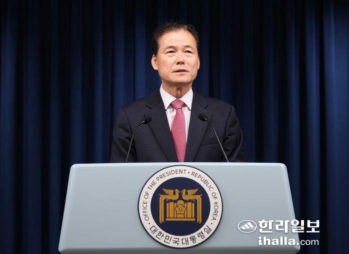 김 비서실장은 김영호 통일부 장관 후보자에 대해 "대통령실 통일비서관, 외교부 인권대사를 역임한 국제 정치·통일 정책 분야 전문가"라며 "통일부 통일미래기획위원회 위원장을 역임하고 있어 원칙 있는 대북정책, 일관성 있는 통일 전략을 추진할 적임자"라고 소개했다.