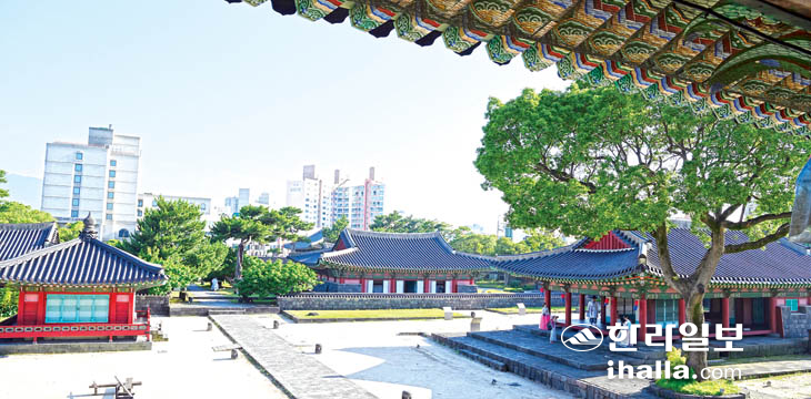 | 을묘왜변 제주대첩 당시 제주목사였던 김수문이 창건했던 제주목 관아 망경루에서 바라본 제주시 원도심. 이상국기자 |
